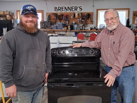 Fast forward to not very long ago, like weeks ago. Danbury City Hall was informed that the stove was not working properly. Councilperson Sherry Welte heard about the issue and remembered seeing a post from Brenner's in Ida Grove concerning a used stove they had for sale. Welte contacted council members before pursuing and was advised to continue. A call to the store and conversation with Clyde Brenner made all concerned very happy. Clyde offered to donate the stove to the cause if the city would pick it up. Public Works Person Chad Kreger picked up the stove. Bob Welte gave it a good cleaning, and the two of them installed it in time for the next renters.